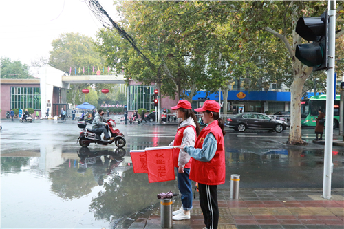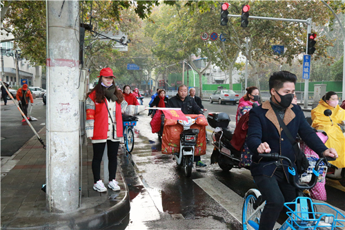 郑州市艺术工程学校党总支副书记丁向群不畏冷雨参与文明交通志愿活动