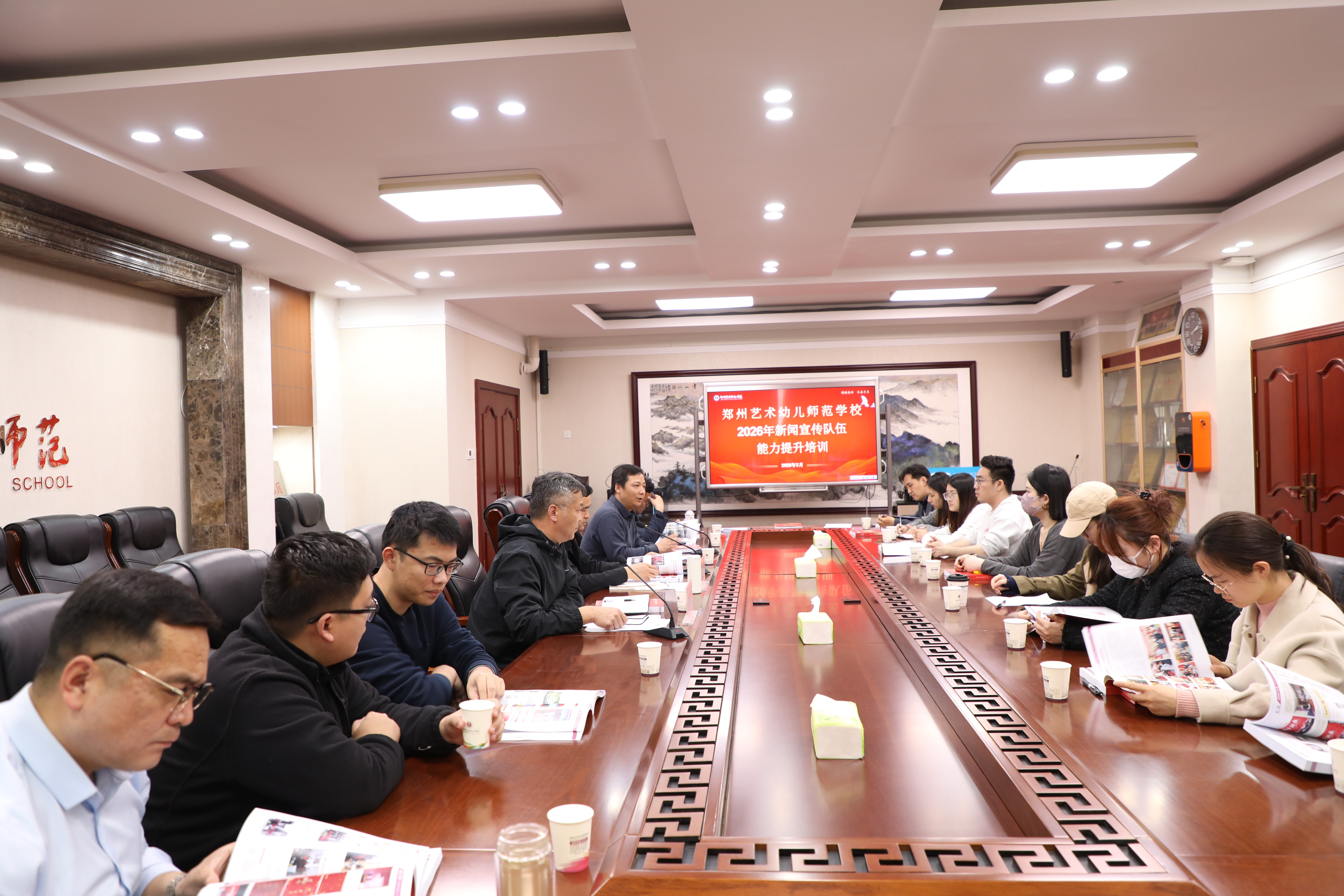 为进一步夯实校园新闻宣传工作基础,打造一支懂宣传、善写作、能出彩的骨干队伍,精准讲好艺幼育人故事、传递校园正能量,3月28日,郑州艺术幼儿师范学校组织开展新闻宣传队伍能力提升专题培训会,学校全体宣传骨干参会。会议由学校党政办公室主任郭晓菲主持。