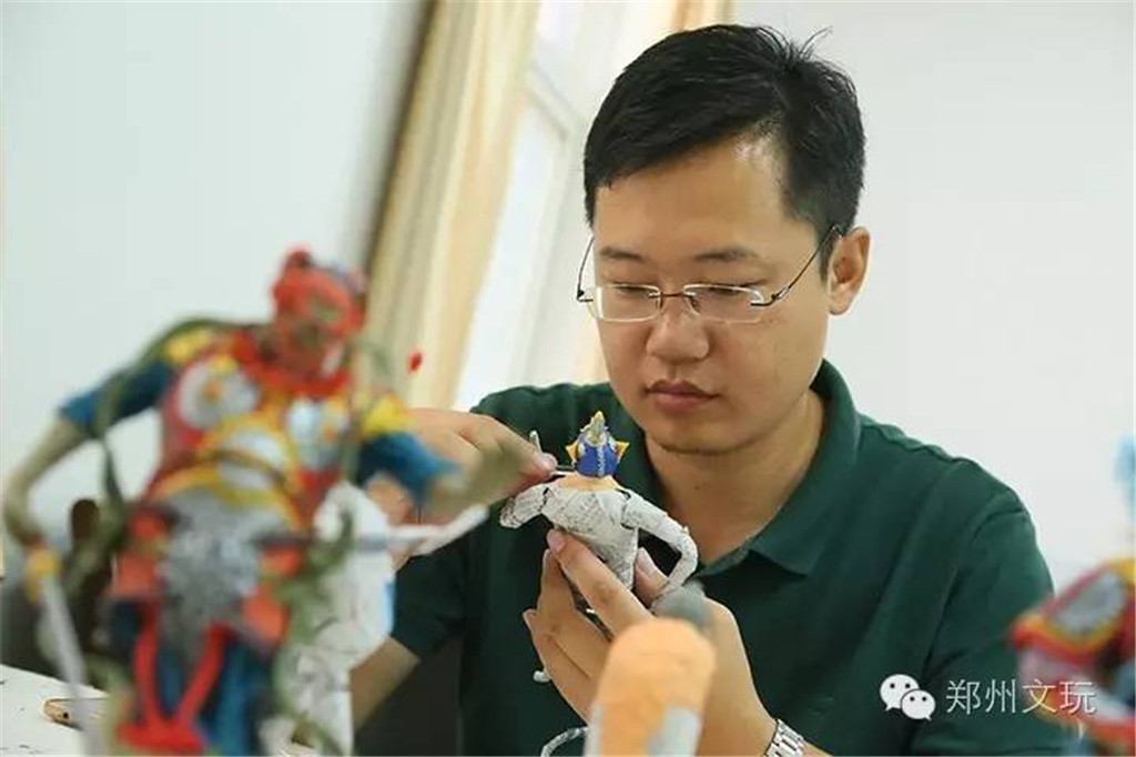 崔老师在校教美术专业及高中基础课,也同时是河南省美术家协会会员,他以循循善诱的授课方式,温和可亲的面容,得到了所有家长和学生的认可。每一个人第一眼见到崔勇锐老师的时候,都几乎不敢相信这么文质彬彬的小伙子竟能做出神话一样的作品,在崔老师的作品里,有威风凛凛的四大天王,也有忠义千古的关云长,有形若鬼魅的钟馗,也有憨态可掬的弥勒佛,这些作品线条张力十足,夸张的神态透射出了神圣与威严,大气而凝重,这些作品无一例外的体现了“创新”,崔老师在原有的面塑基础上进行了许多改进,将中国画的线描基础的传统技法融入面塑,并从基础面团制作到颜料的混合的每一个细节入手,甚至对使用工具都进行了改良,这一切的革新和改变,都在创作者执着与深爱中得到了升华,他的创作仿佛给人物赋予了新的灵魂和生命,让每一个书中的人物栩栩如生的出现在我们的视野。