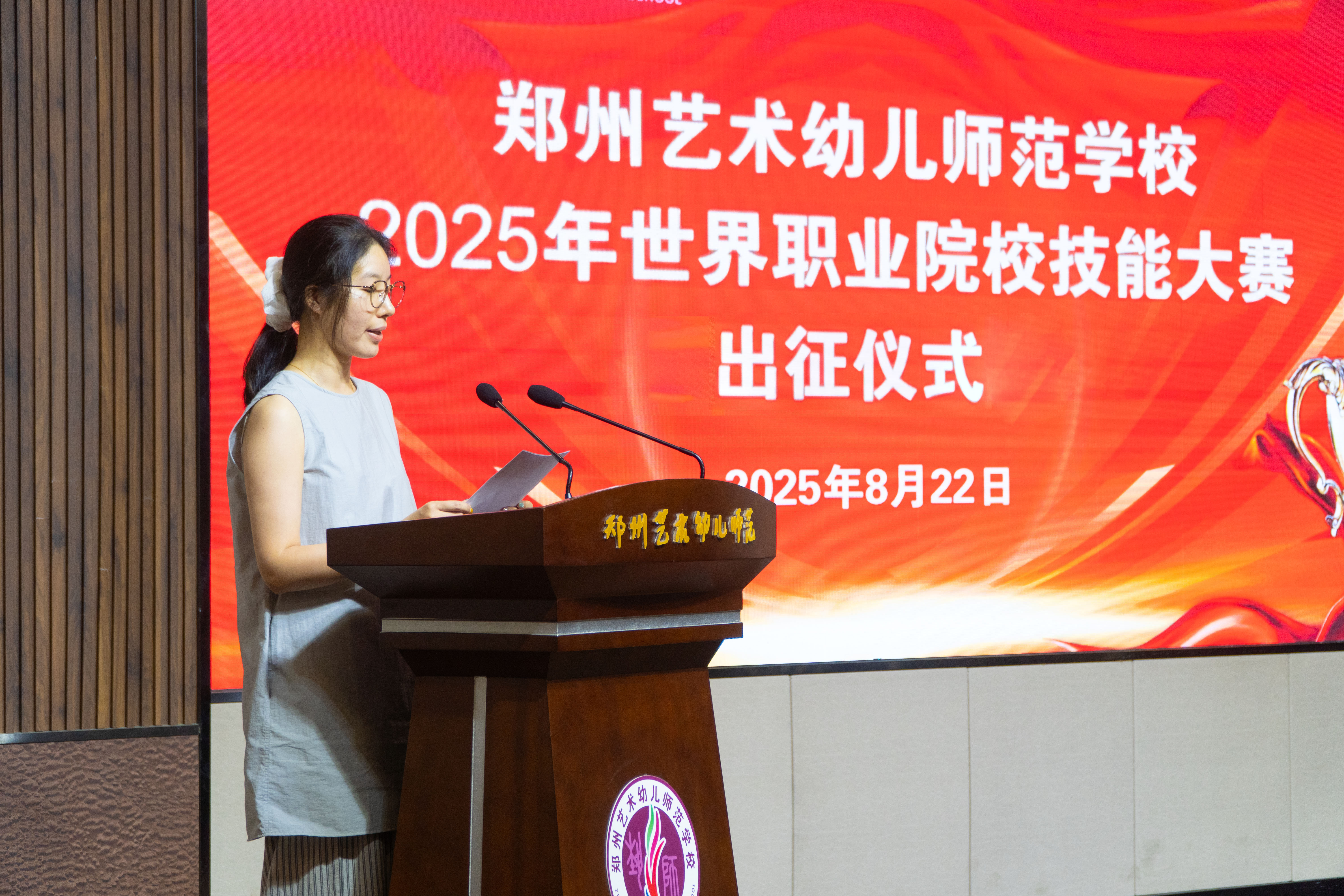 2025年世界职业院校技能大赛争夺赛即将开赛,8月22日下午,郑州艺术幼儿师范学校在学术报告厅举行出征仪式,为即将代表学校奔赴赛场的师生队伍壮行,学校党委书记周卫红携领导班子出席本次仪式,共同见证这一重要时刻。